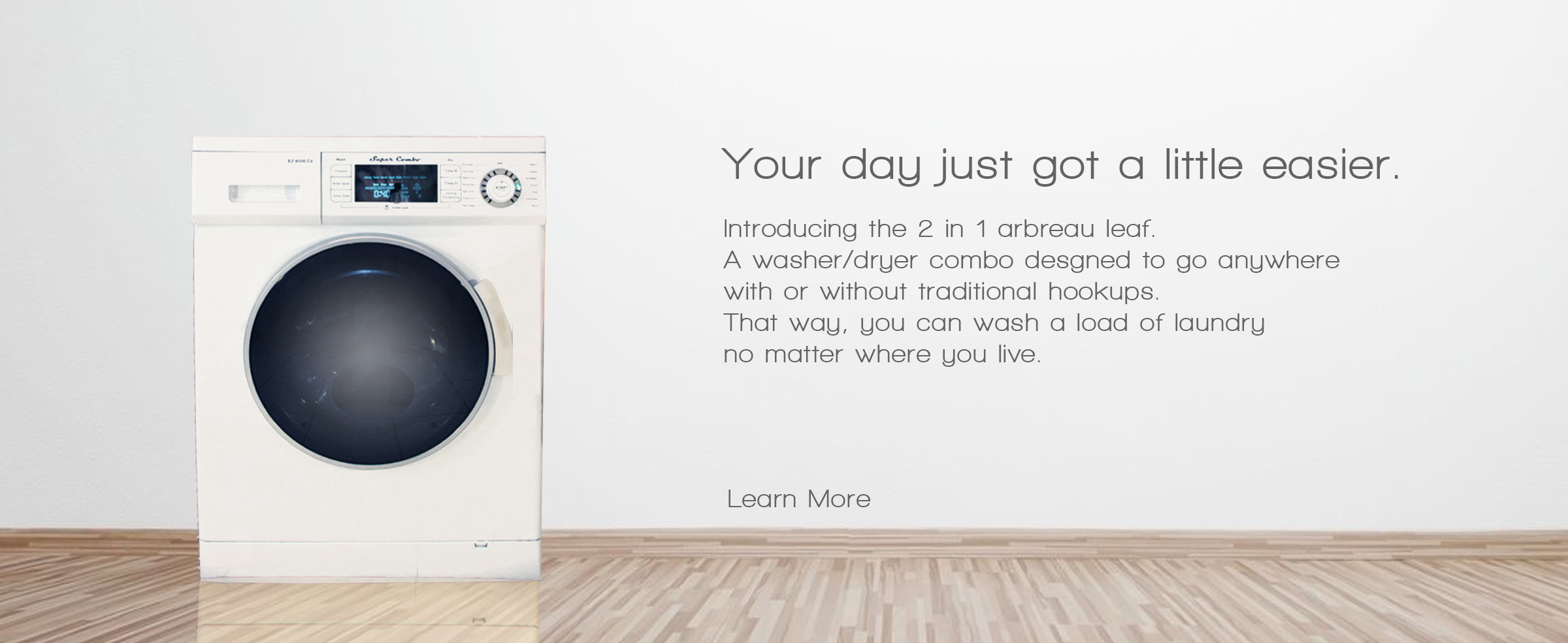 The Super Combo is a washing machine and a dryer in one unit. You put the clothes in, and they come out clean and dry without you having to do anything in between.